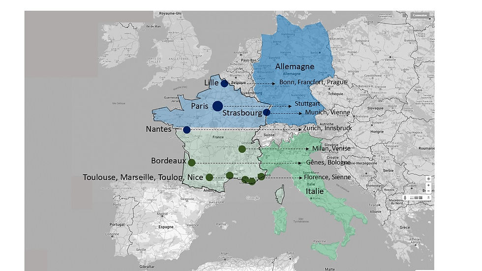 On a souvent tendance à placer la France « à côté de l’Allemagne » sur les cartes de l’Europe, et à considérer l’Italie comme un pays beaucoup plus méridional. Comme si la France et l'Allemagne étaient de toute évidence dans une même régions de l'Europe, et l'Italie faisant partie d'un monde sud-Européen présenté comme distant et exotique.